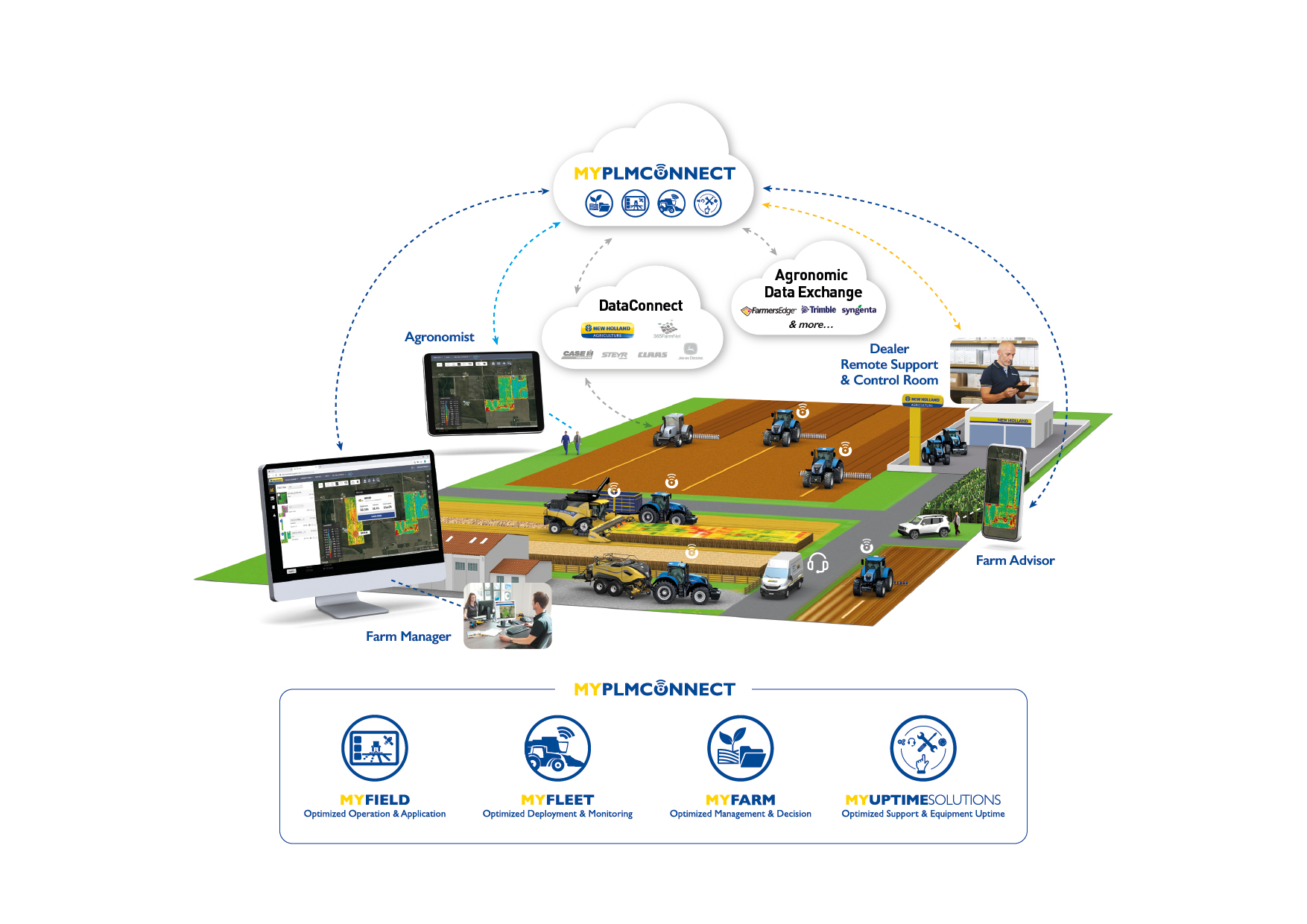 The solutions from the Fleet and Farm strategies are available through New Holland’s offboard environments, MyNew Holland™ and MyPLM®Connect.